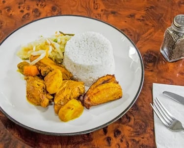 I had the oxtail dinner, with rice and peas... The food was fresh and delicious. The owner was very welcoming and pleasant. I sat inside and ate my food.