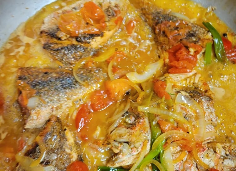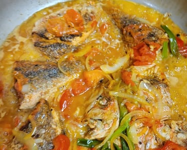 Tender fish seasoned to perfection and simmered in a delicious brown stew gravy, a must-try for seafood enthusiasts.