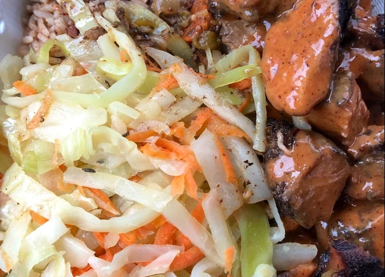 Our specialty is our world-class Jerk Pork, which is grilled to smoky perfection and finished with a secret sauce that locals call "the cherry on top." We focus on a curated selection of stellar dishes, including our tender Oxtail Dinners, savory Curry Goat, and moist, flavor-exploding Jerk Chicken. Every platter comes with generous portions of traditional sides like rice and peas, and our unique cabbage that stands out from any other joint in town.
